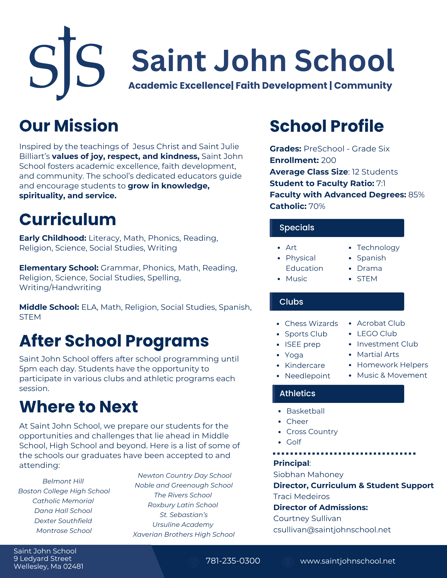 Navigation About Welcome Message History Leadership Faculty & Staff Employment Opportunities Admissions Why SJS? Admissions Information & Calendar Request Information Open House Apply Online Tuition and Fees Academics Early Childhood Elementary School Middle School Specials Where To Next SJS Families Calendar Volunteering FACTS Family Portal Where to Start SJS PTO PTO Documents PTO Sign Up Uniforms Handbook Health Office Bullying Prevention Policy Family Mass Activities Athletics Cheer Basketball XC-Cross Country Golf After School Programs Giving Give to SJS Annual Fund Giving Tuesday Trees & Trimmings Auction Spirit Wear